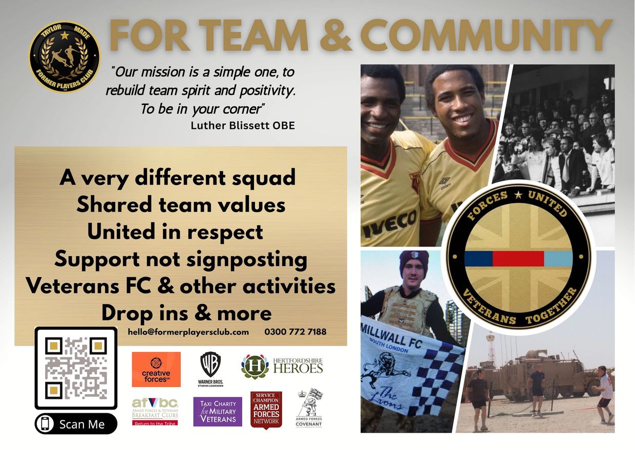 Leading the team behind "The Former Players Club Luther is Honorary Life President of Watford FC and is their all time record goal scorer and appearance maker as well as their first full England International. Luther was the first black footballer to